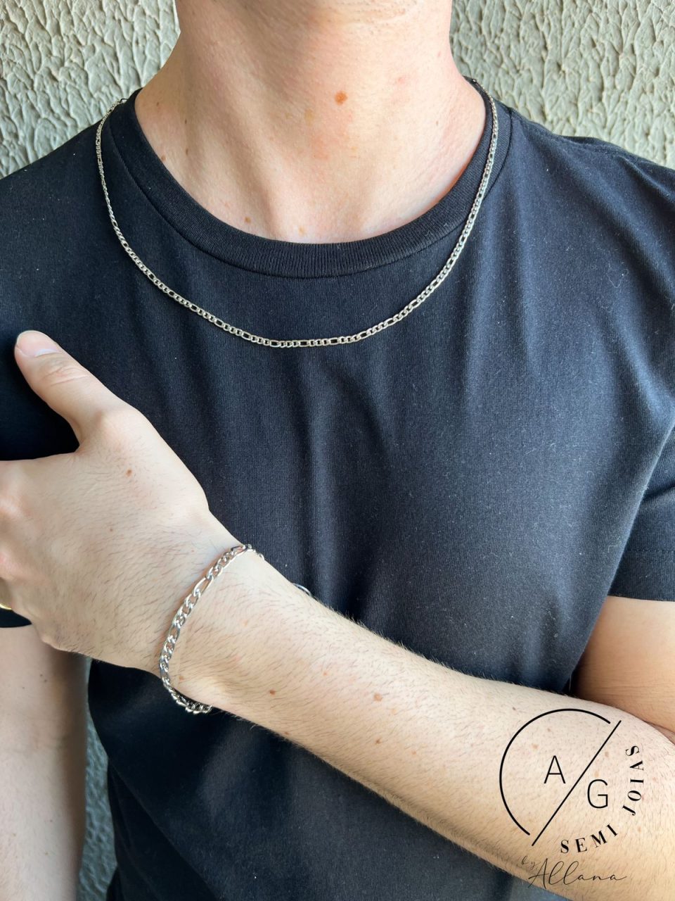 Corrente e Pulseira masculina confeccionado em aço inox 316L de alta qualidade. Além do estilo, beleza, possuem alta durabilidade e antialérgico.