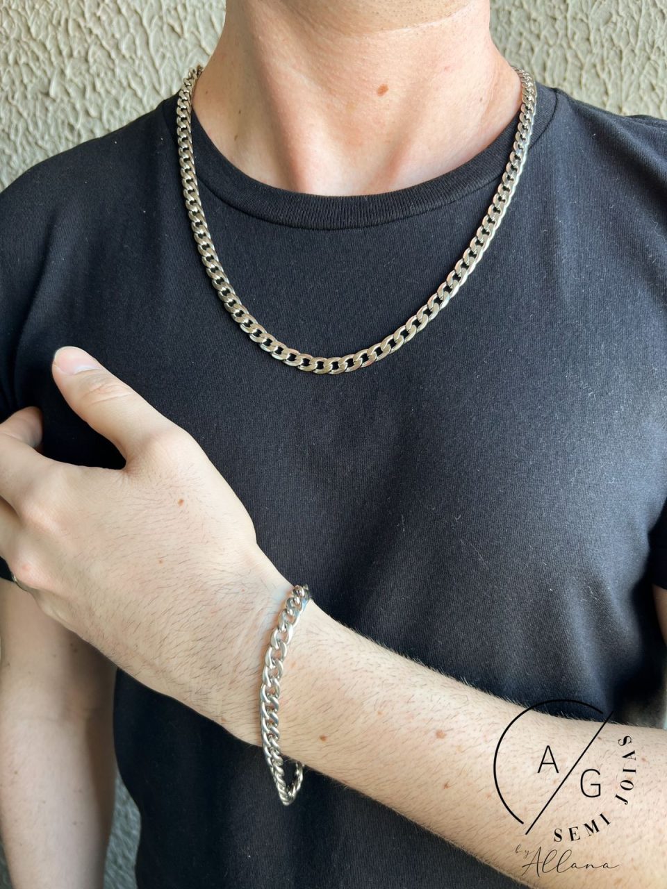 Corrente e Pulseira masculina confeccionado em aço inox 316L de alta qualidade. Além do estilo, beleza, possuem alta durabilidade e antialérgico.