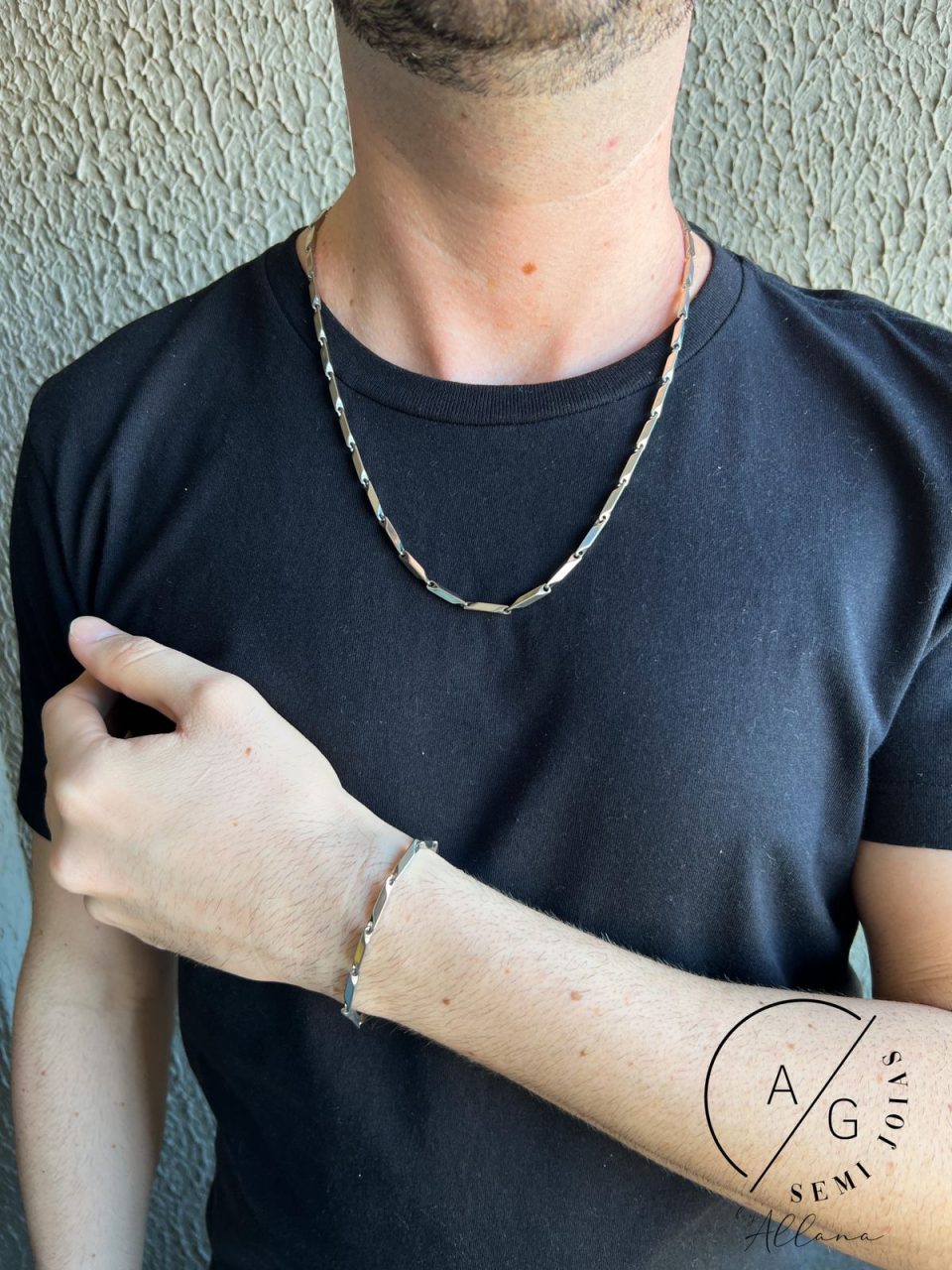 Corrente e Pulseira masculina confeccionado em aço inox 316L de alta qualidade. Além do estilo, beleza, possuem alta durabilidade e antialérgico.