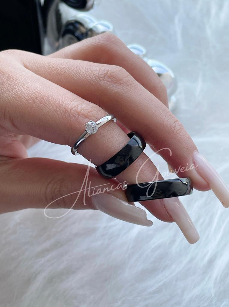 Par Aliança Banhada Preta Abaulada 4MM