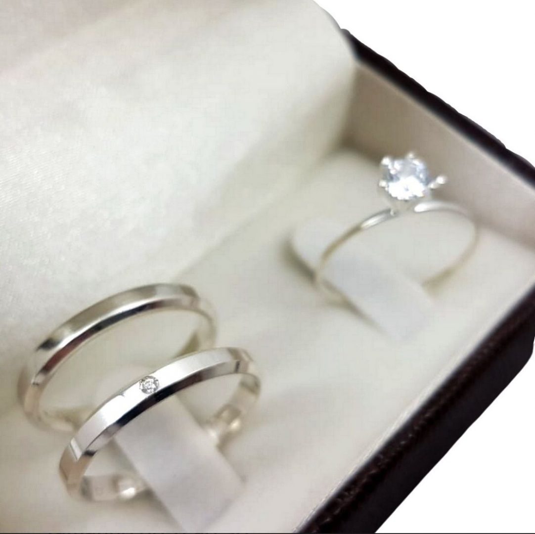 Par de Alianças de Prata 950 – Chanfrada e Pedra