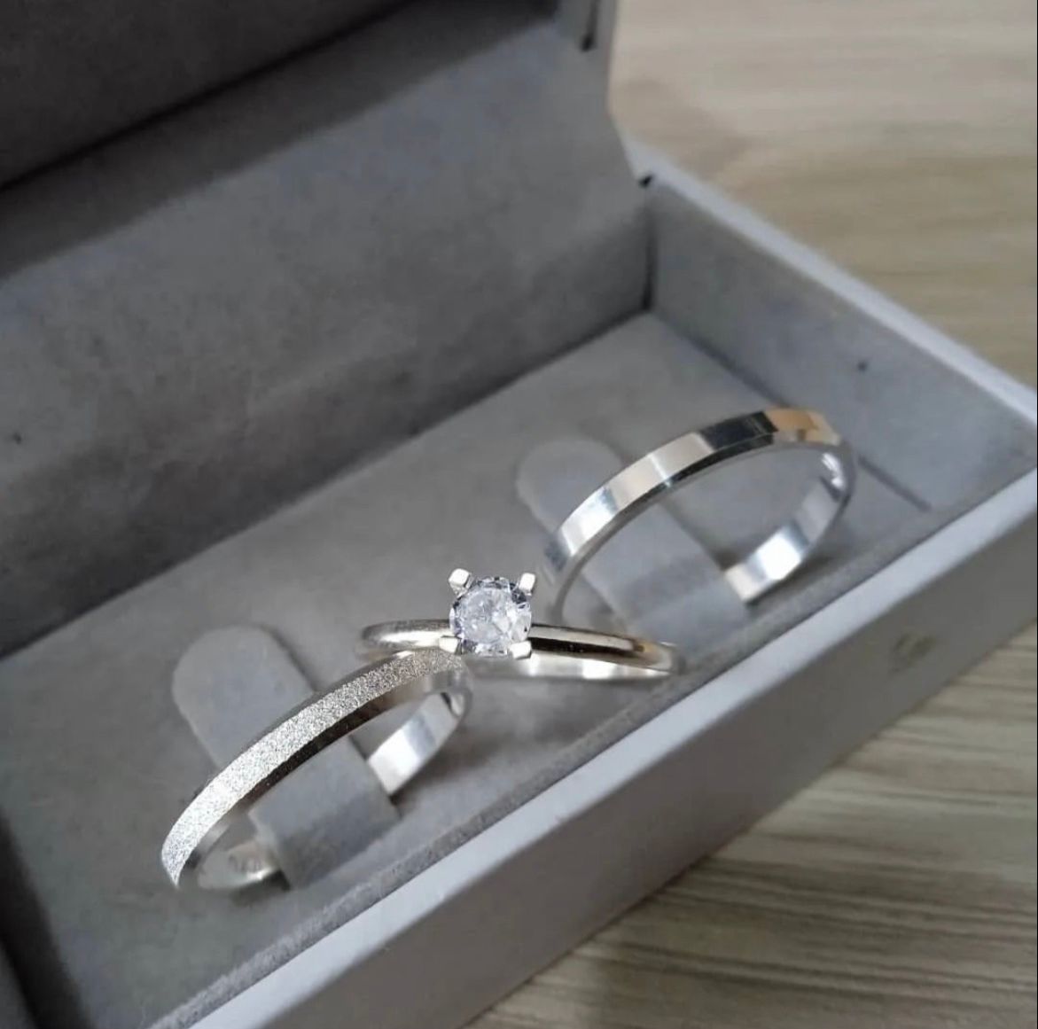 Par de Alianças de Prata 950 – Chanfrada Jateada e Lisa