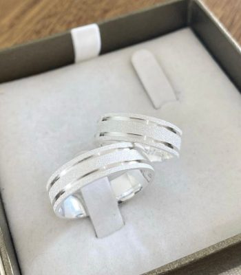 Par de Alianças de Prata 950 – Chanfrada Jateada e Lisa