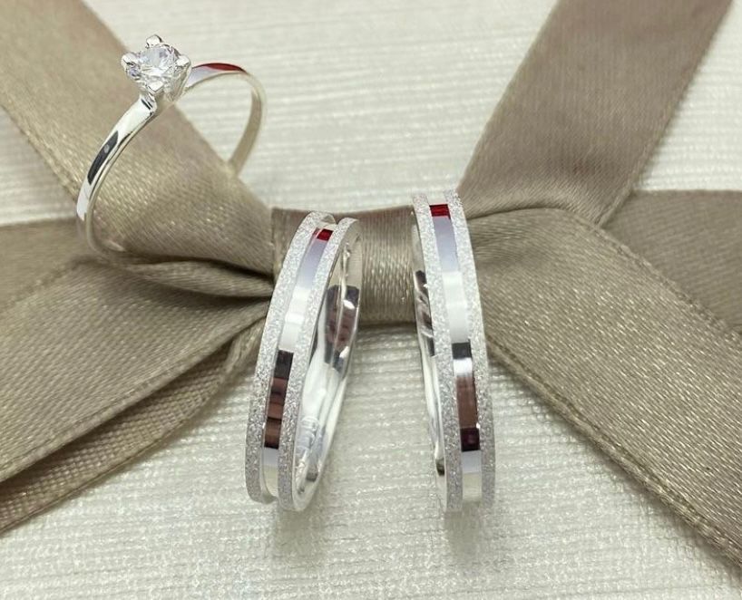 Par de Alianças de Prata 950 – Reta Frisão Jateada