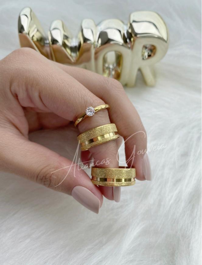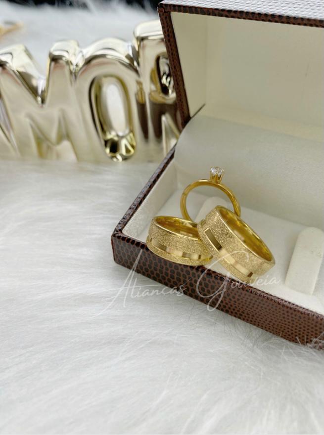 Par Alianças Jateada friso no canto com 8MM de Largura