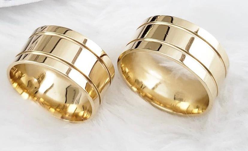 Esse é um lindo par de alianças de moeda antiga 2 Frisos com 10MM de largura, a aliança de moeda não descasca, não descora e não enferruja, basta polir que o brilho volta instantaneamente.
