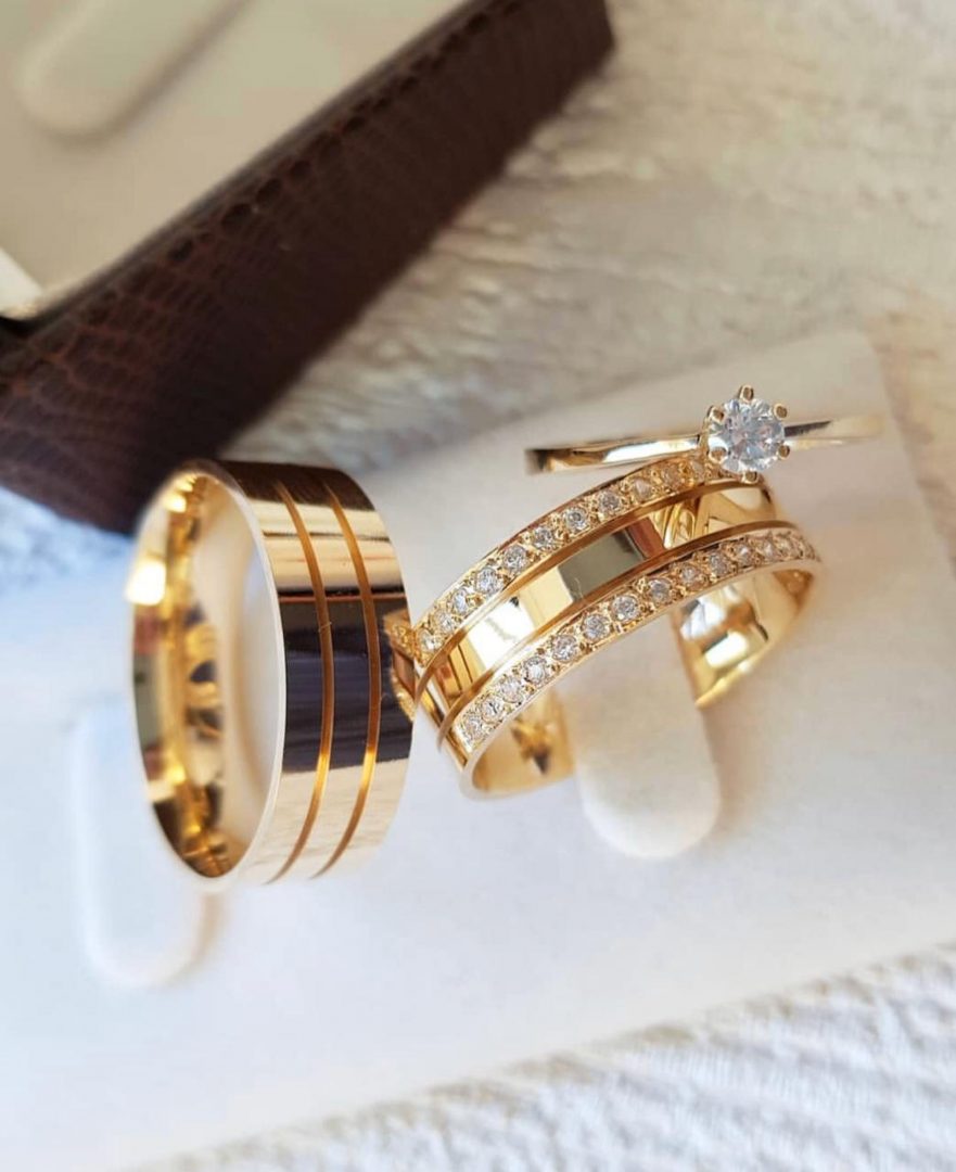 Brindes: Caixinha de Veludo Grátis, Gravação Grátis, Amostra do Polidor para polir as alianças e Flanela e Anel solitário ele é folheado, sortido (Modelo não necessariamente igual ao da foto, pois depende da nossa disponibilidade no estoque no ato do envio) e não damos garantia sobre ele.