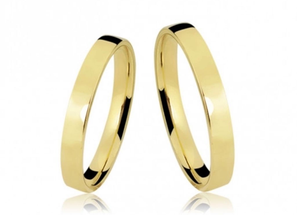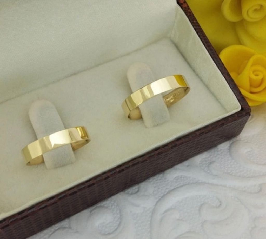 Par Alianças de Ouro 18K 6MM de Largura Chanfrada 9 Gramas de Ouro