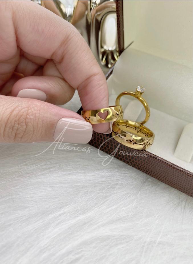 Esse é um lindo Par de Alianças de Aço Inoxidável de 6MM de largura coração e batimento.