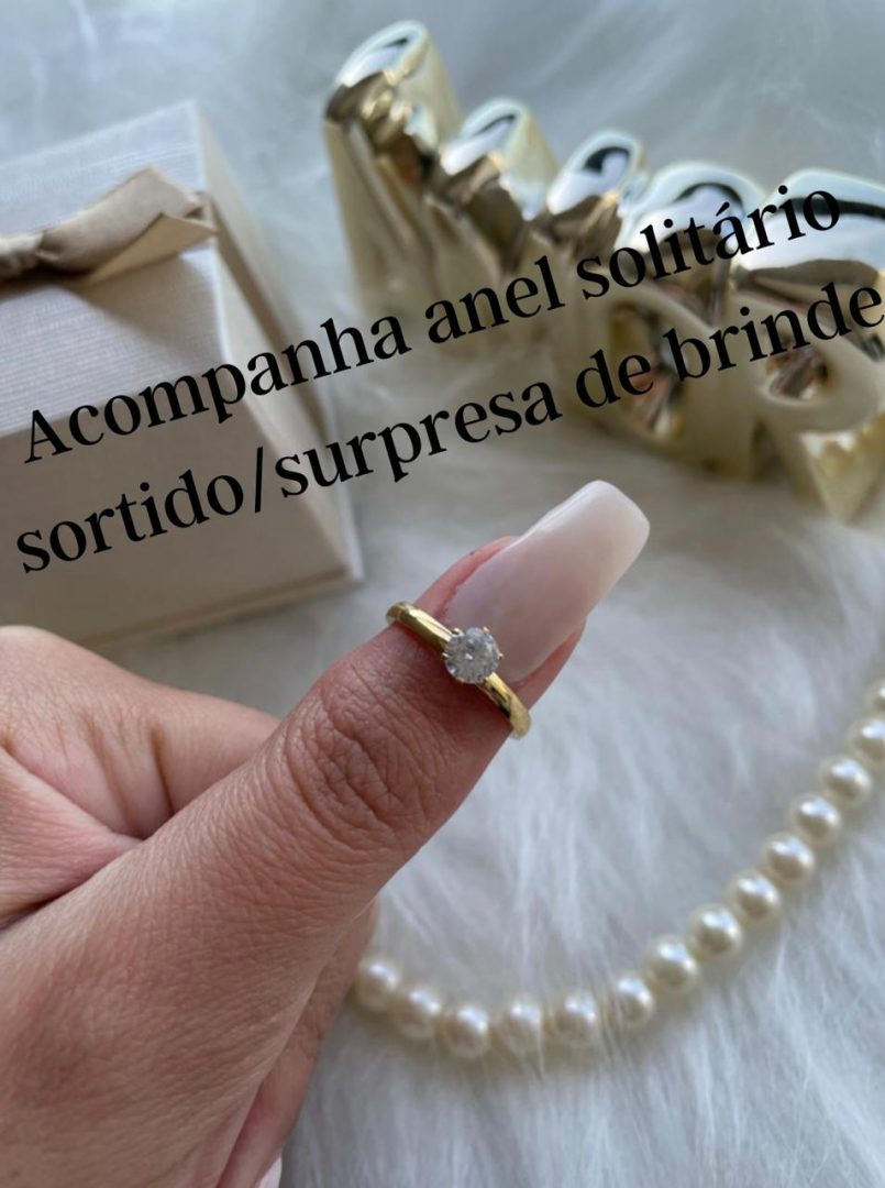 – Anel solitário que acompanha de brinde é modelos sortido e folheado (Não necessariamente o mesmo da foto)