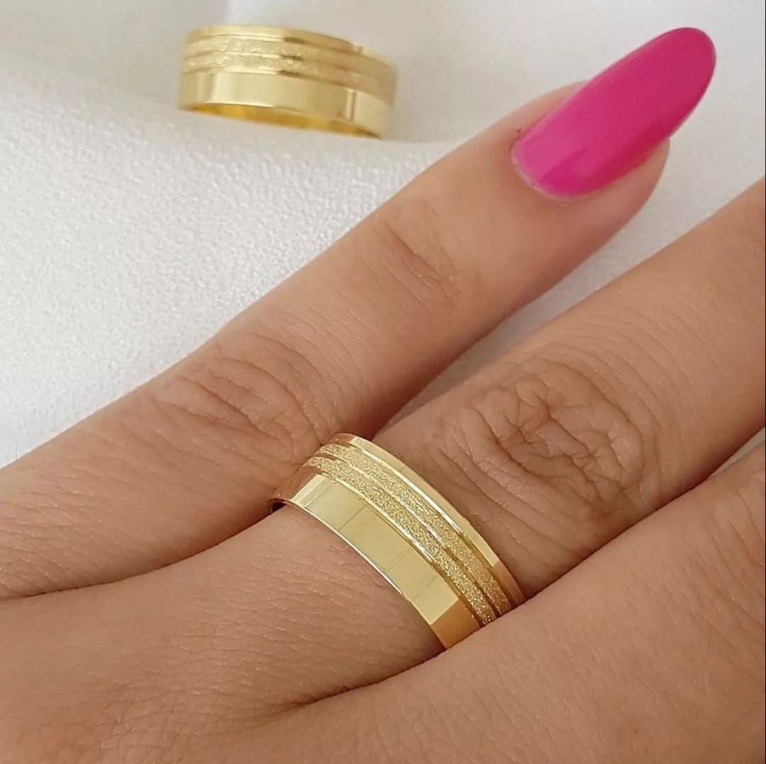 Par de Alianças Moedas Antigas Reta 8MM 3 Frisos Jateada