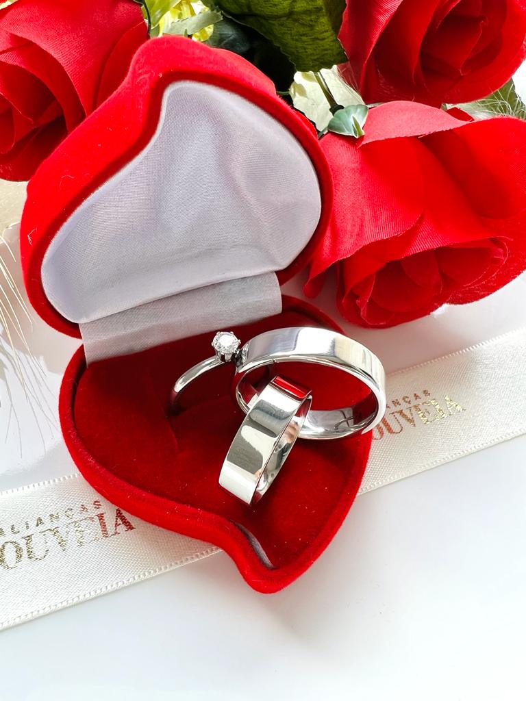 Par de Alianças Aço Inox Reta 6MM e Pedra